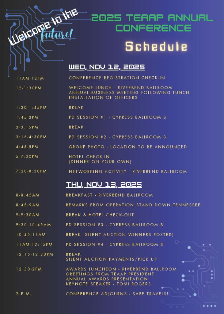 The 2025 TEAAP Conference will be held at the DoubleTree By Hilton Clarksville Riverview in Clarksville, TN.